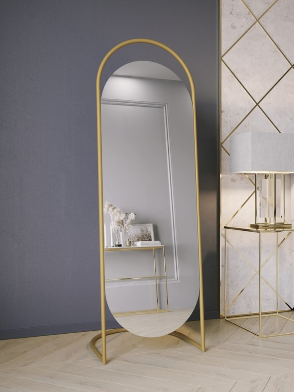 Зеркало «Queen». Артикул GMZ-01-1/2/3 Дизайнерское напольное зеркало в полный рост в металлической овальной раме ручной работы выполнено в минималистичном стиле. Простая изысканность форм и современный дизайн делает его уместным практически в любом интерьере. Оно может быть установлено в спальне, прихожей, гостиной, где за счёт своих внушительных размеров способно расширить пространство и создать иллюзию источника освещения. Зеркальное полотно изготовлено известным бельгийским производителем AGC и воплощает в себе старинные европейские традиции в совокупности с новейшими технологиями изготовления стекла. Наклон зеркала оптимальный фиксированный, что позволяет отражать любой рост.Характеристики:– профиль рамы – труба, диаметром 20 мм; – габариты – 1650х540х400 мм; – размер зеркального полотна – 1350х500 мм, толщина – 4 мм; – вес – 11 кг; – устойчивая двухслойная порошковая окраска; – возможные цвета – золотой, чёрный, белый.
