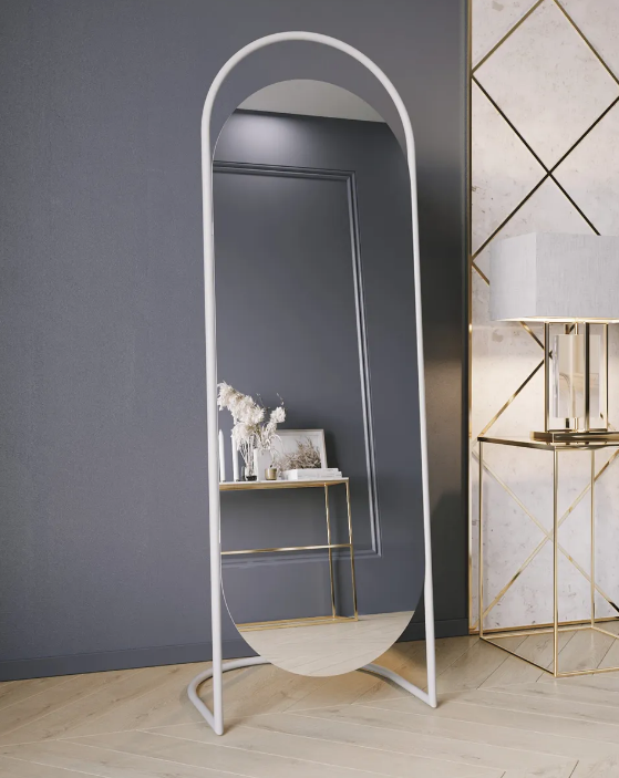 Дизайнерское напольное зеркало Glass Memory Queen в металлической раме белого цвета в Туймазы